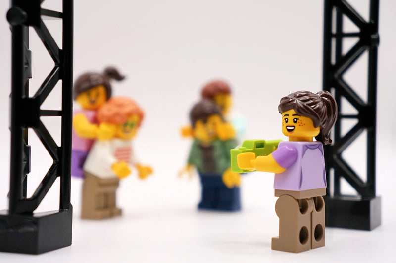 Once the build is ready, we set the scene. Lighting, angles, props - This is where your brick world comes to life